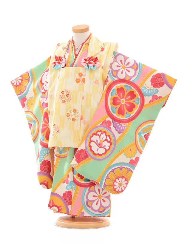 七五三レンタル(3歳女の子被布)3220白黄色ぼかし×パステルグリーン花まり