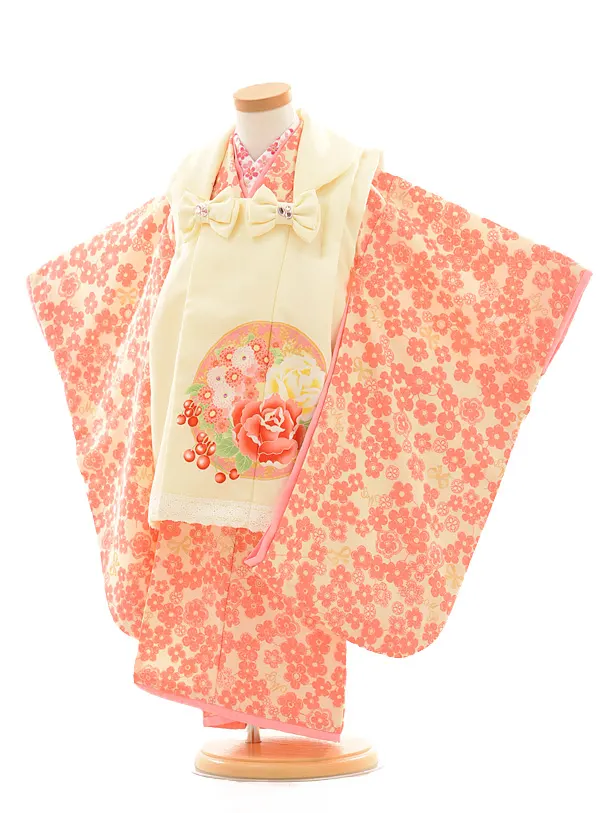 七五三レンタル(3歳女の子被布)3176乙葉クリーム×ピンク
