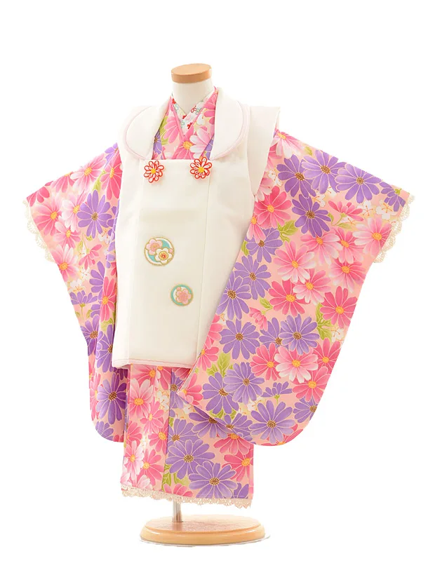 七五三レンタル(3歳女の子被布)3191白×ピンクパープル小花