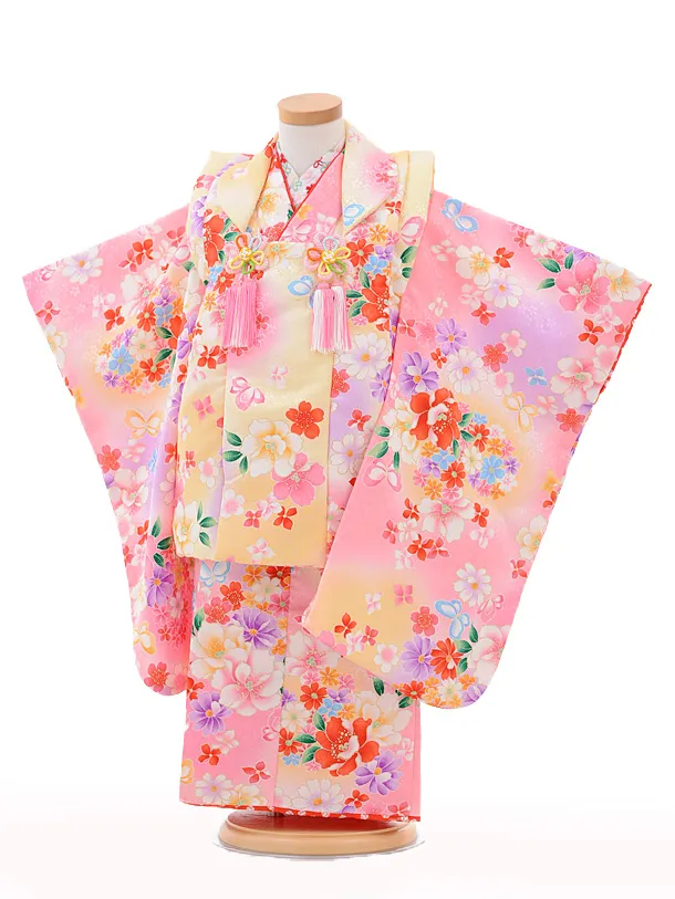 七五三レンタル(3歳女の子被布)3188ピンク×ピンクパープル小