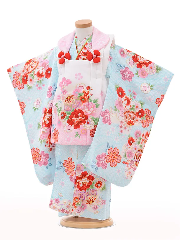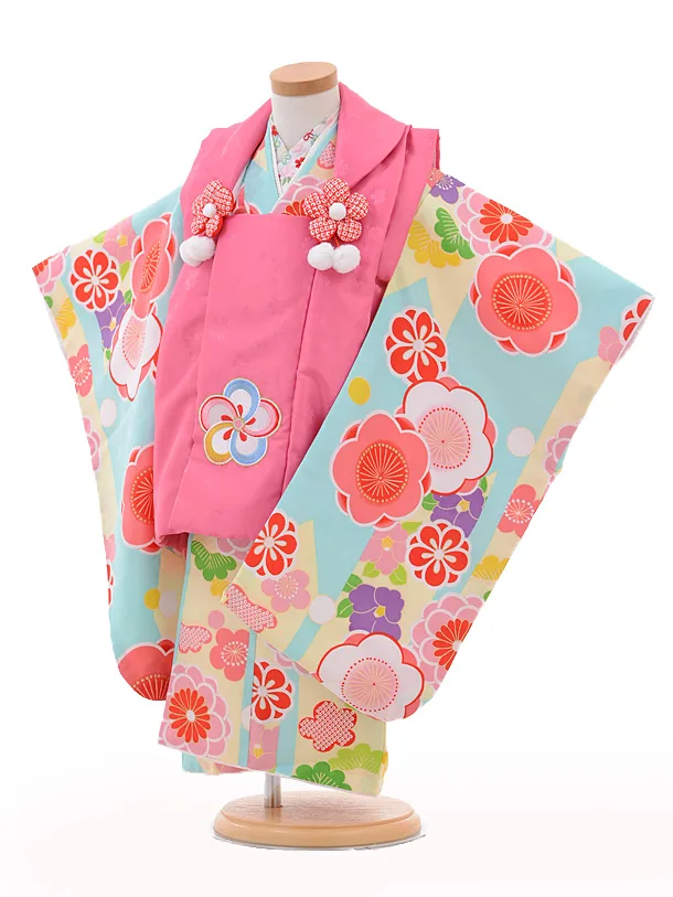 七五三レンタル(3歳女の子被布)3234乙葉ピンク×水色薬