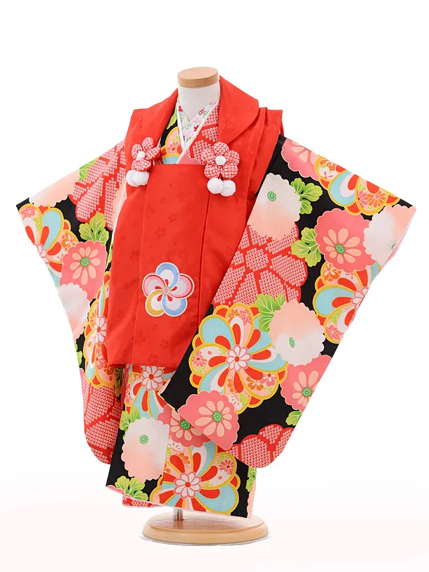 七五三レンタル(3歳女の子被布)3216小町kids赤×黒梅菊