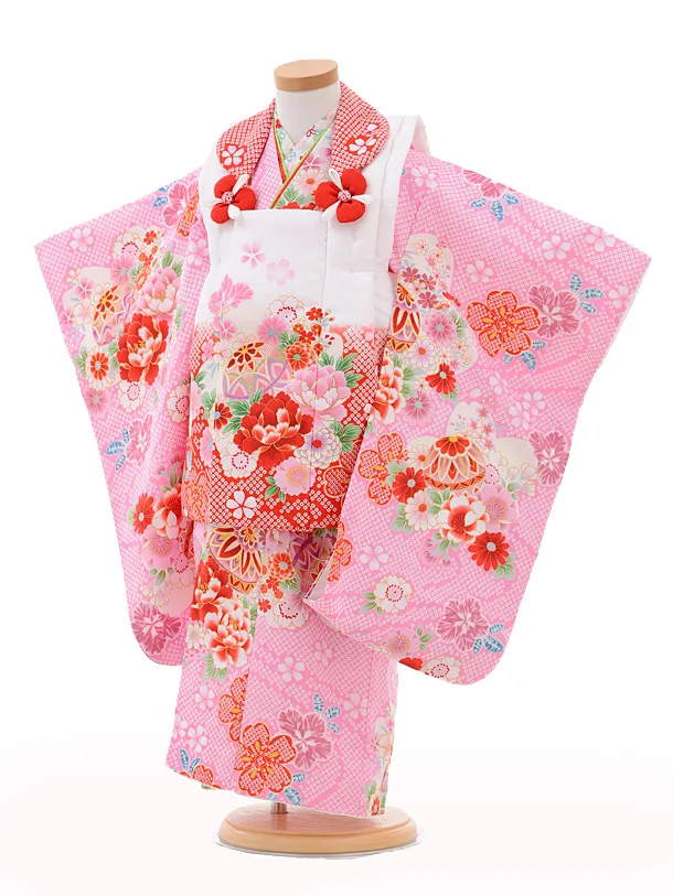 七五三レンタル(3歳被布)3177乙葉ピンク×白