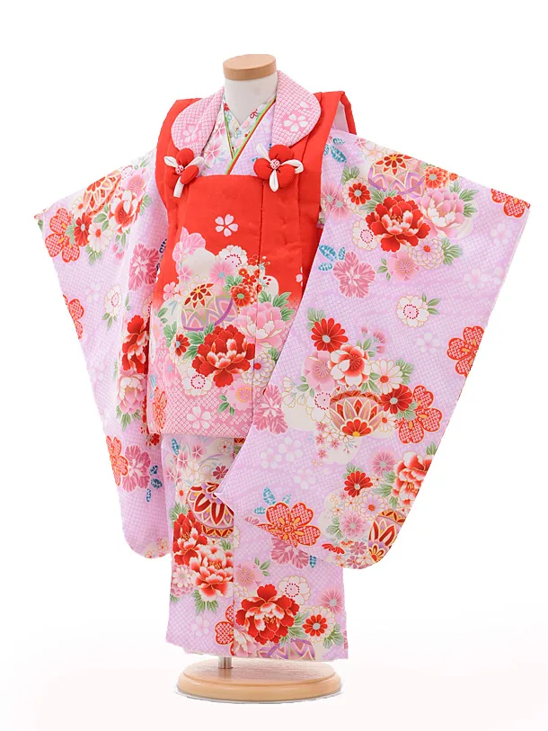 七五三レンタル(3歳女の子被布)3232メゾピアノ赤×ピン