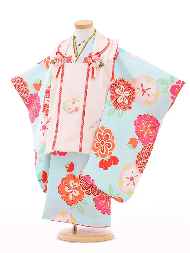 七五三レンタル(3歳女の子被布)3313ピンクまり×水色桜