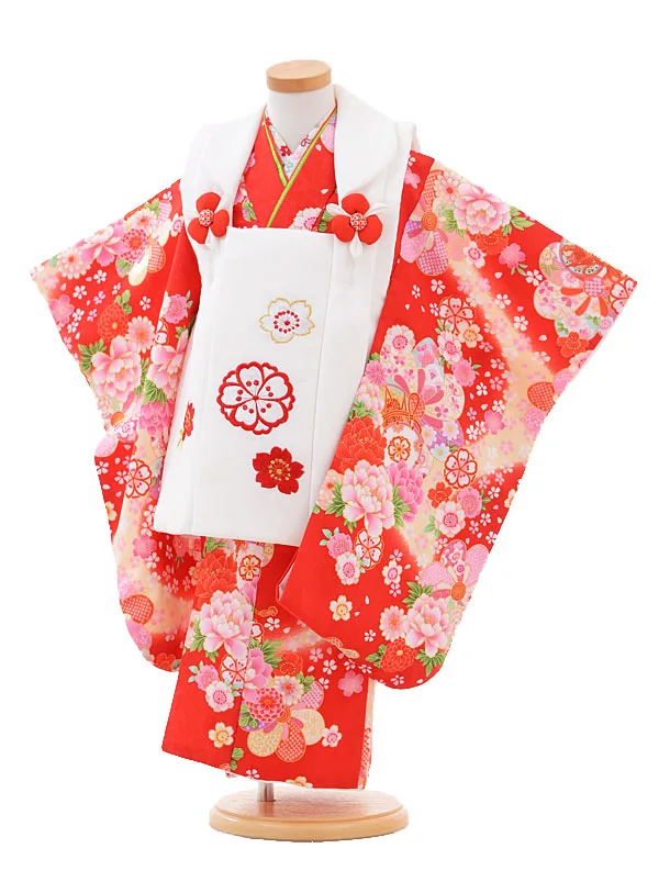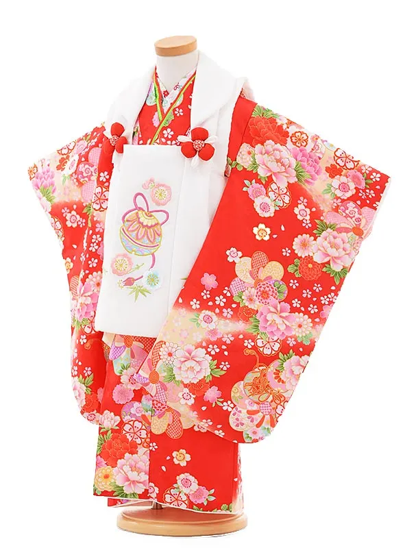 七五三レンタル(3歳女の子被布)3310白まり×赤桜