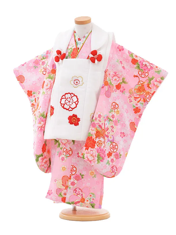 七五三レンタル(3歳女の子被布)3311ピンクまり×白桜