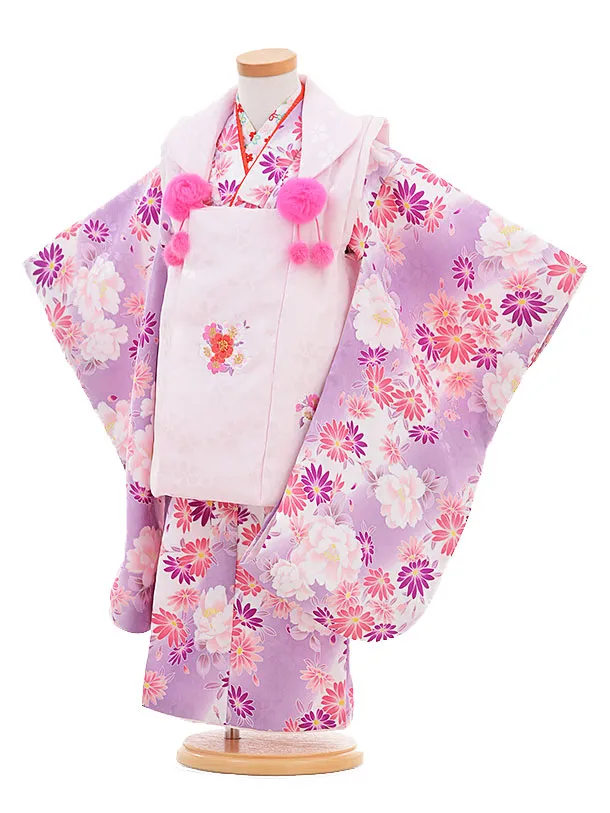 七五三レンタル(3歳女の子被布)3292ピンクファーボンボン×薄紫花