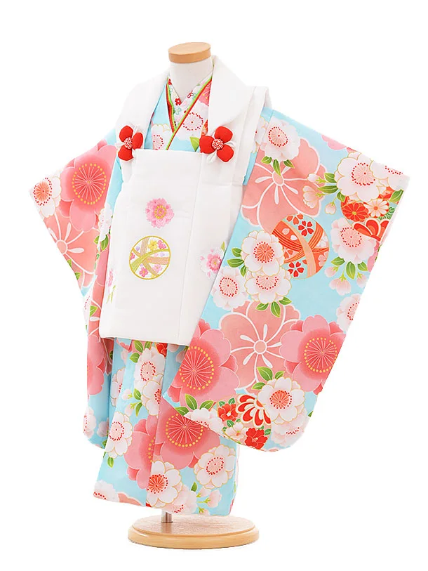七五三レンタル(3歳女の子被布)3315R・KIKUCHI白×水色花まり