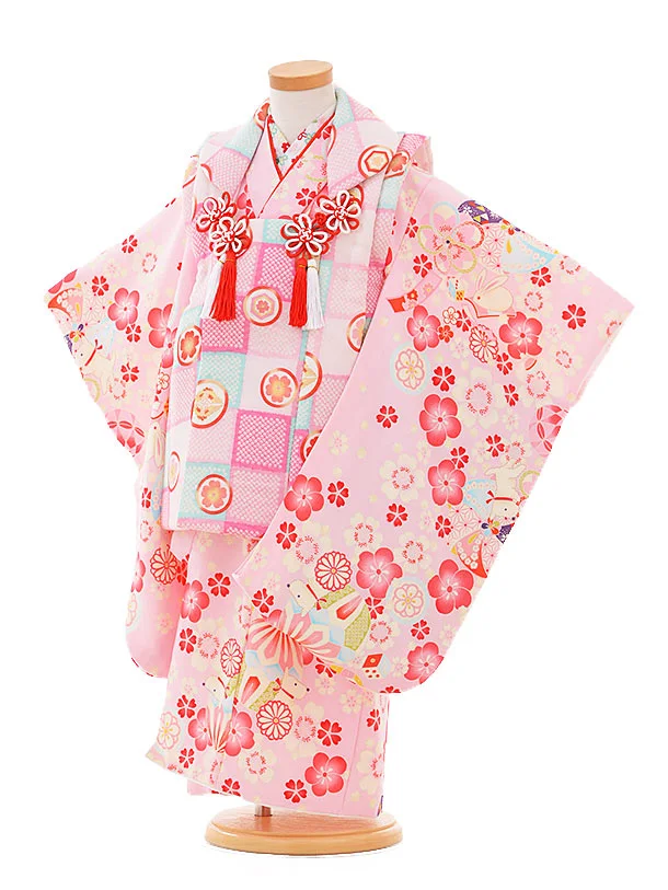 七五三レンタル(3歳女の子被布)3312ピンクまり×ピンク桜