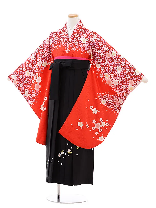小学校卒業式袴レンタル(女の子)9766 赤地桜×黒袴