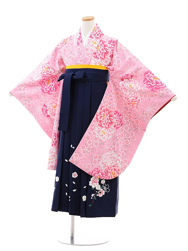 小学校卒業式袴レンタル(女の子)9774 ピンク地桜ぼたん×紺袴