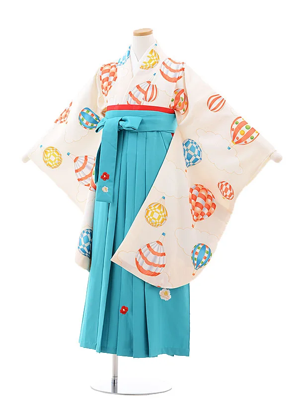 小学校卒業式袴レンタル(女の子)9782 クリーム地バルーン×ターコイズ袴
