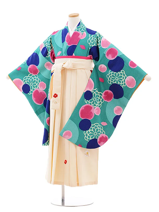 小学校卒業式袴レンタル(女の子)9783 グリーン地水玉×クリーム袴