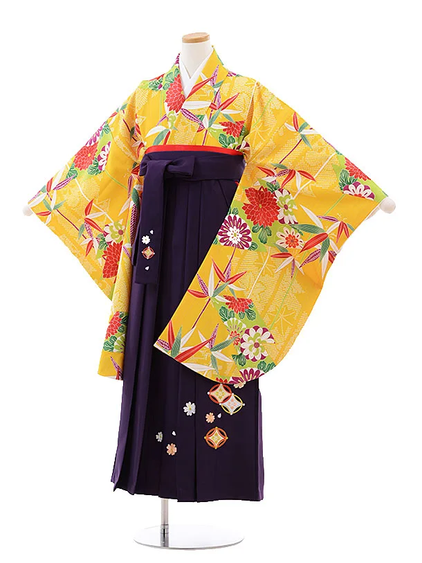 小学校卒業式袴レンタル(女の子)9789 黄色地古典×パープル袴