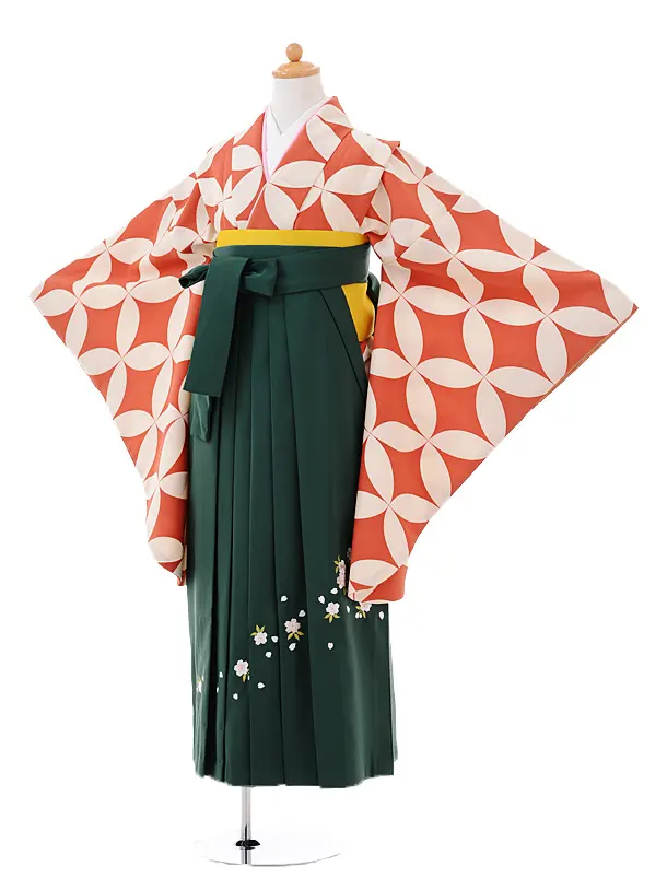 小学生卒業式袴レンタル(女の子)9405赤茶色七宝×緑袴