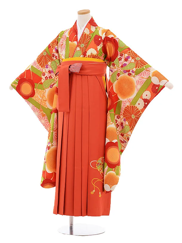 小学生卒業式袴レンタル9484九重オレンジ古典×オレンジ袴