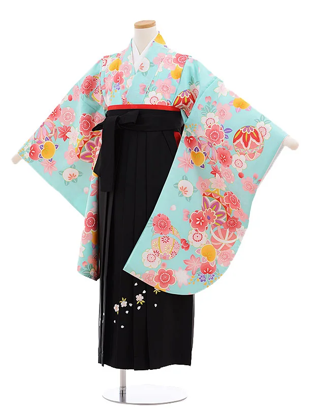 小学校卒業式袴レンタル(女の子)9663ターコイズまり花×黒袴