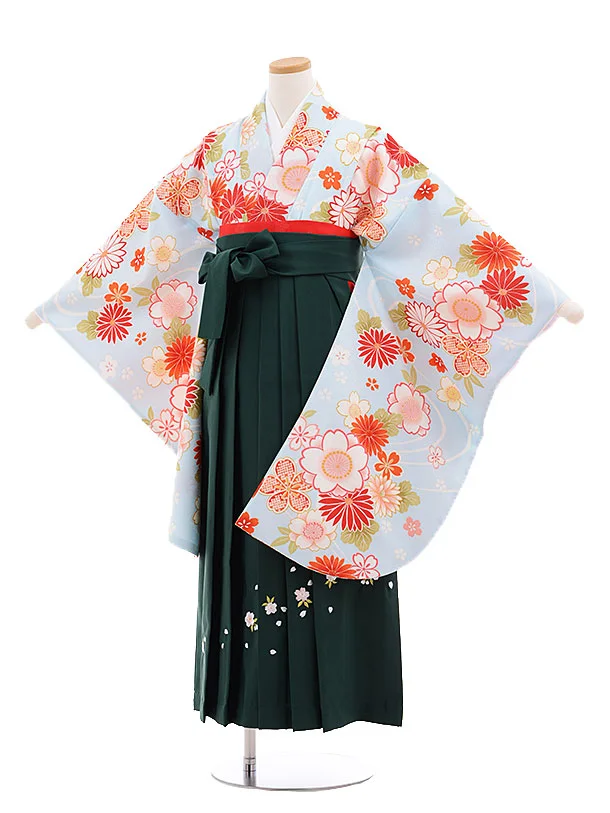 小学校卒業式袴レンタル(女の子)9673水色桜菊×グリーン袴