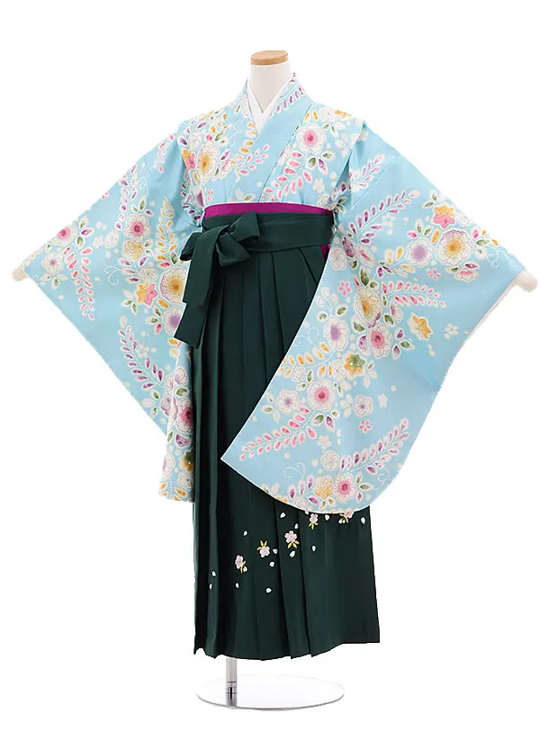 小学校卒業式袴レンタル(女の子)9681水色花藤×グリーン袴