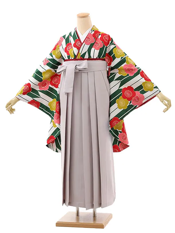 小学生卒業袴レンタルZ245クリームもみじ梅xグリーン