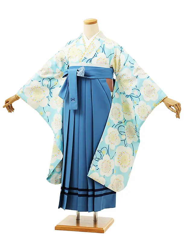 小学生袴Z198 ターコイズ梅×ベージュ袴