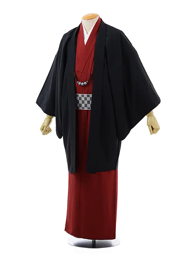 メンズアンサンブル0010黒×エンジ(L170cm~175cm対応)