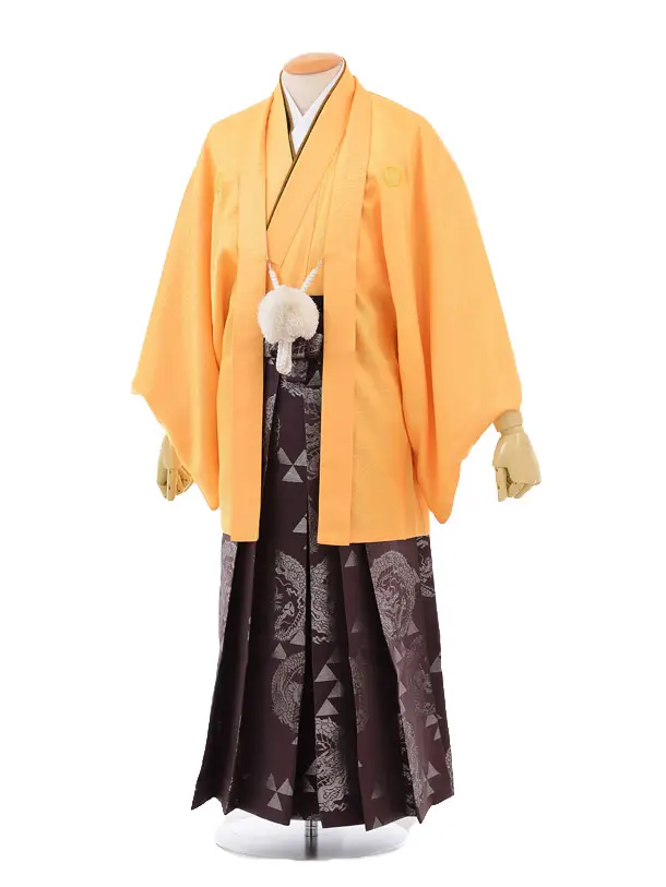 成人式卒業式袴レンタル(男)D030オレンジ紋付×紫