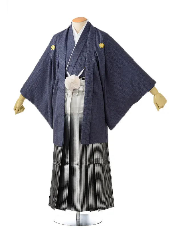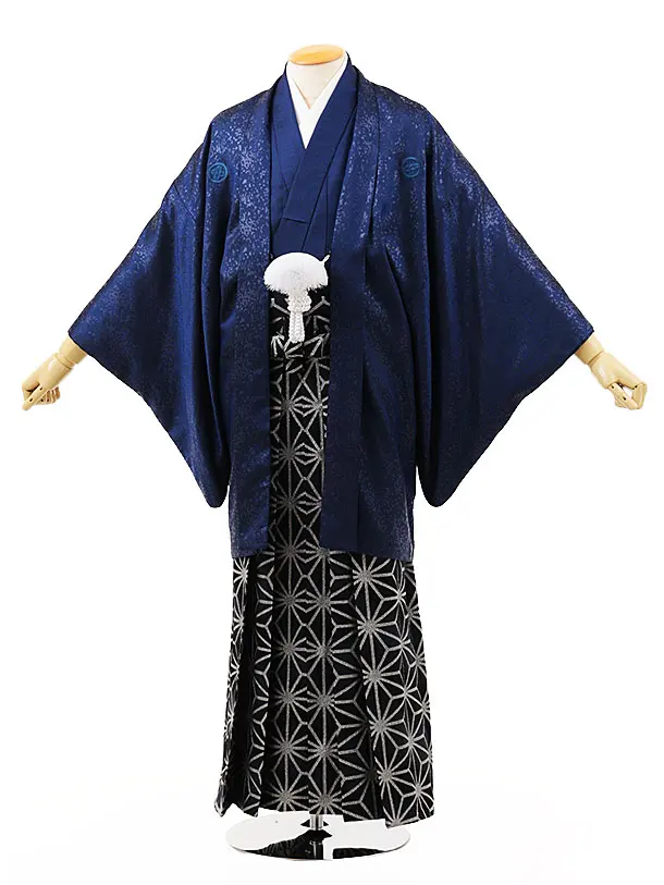 男性袴レンタル0259 ブルー紋付×紺シルバー