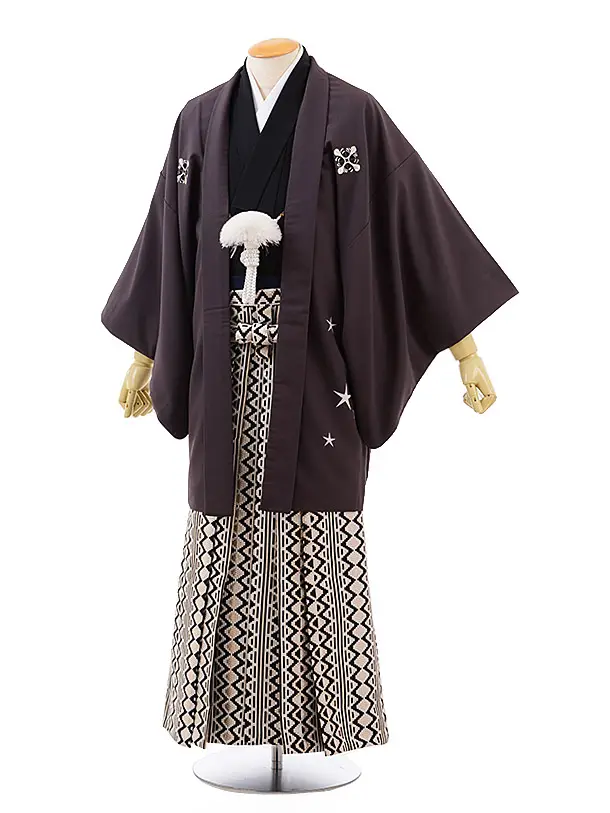 成人式卒業式袴レンタル(男)D024ブラウン紋付×黒