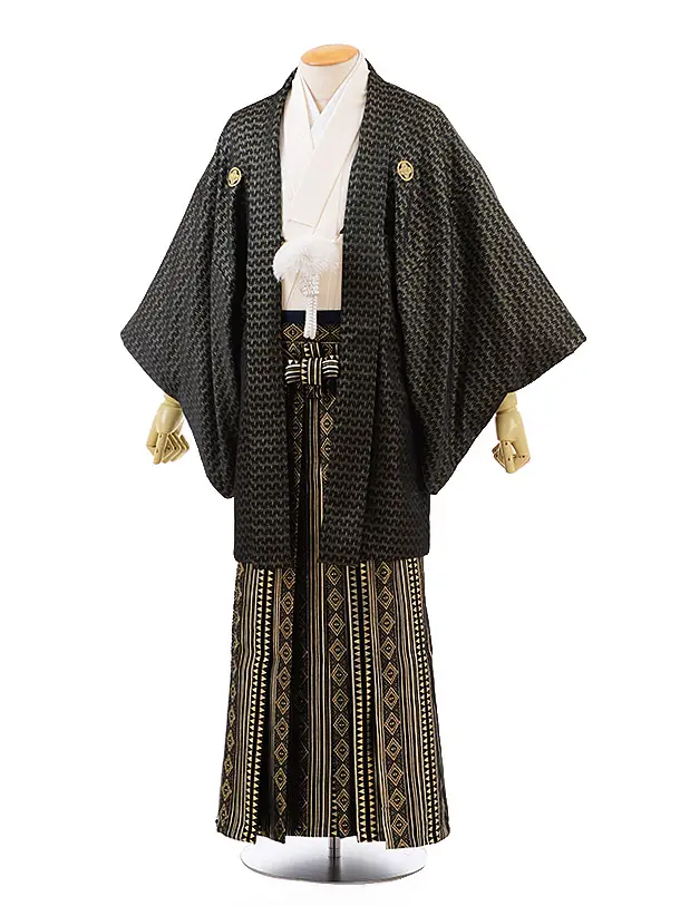 成人式卒業式袴レンタル(メンズ)D059黒ジャガード紋