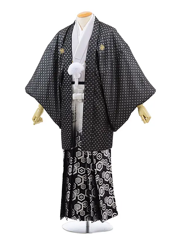 成人式卒業式袴レンタル(男)D008白黒刺子紋付×