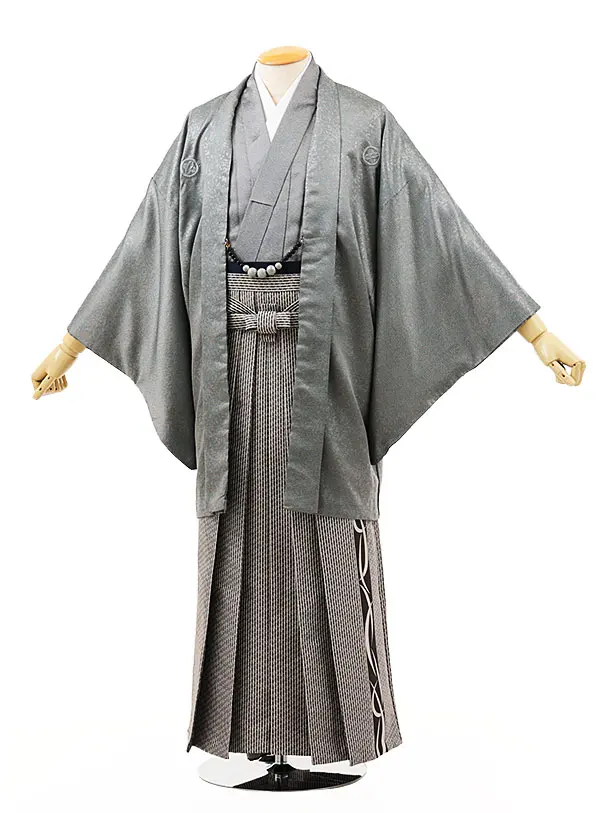 男性用袴レンタル men0005濃グレー×白銀黒ぼかし