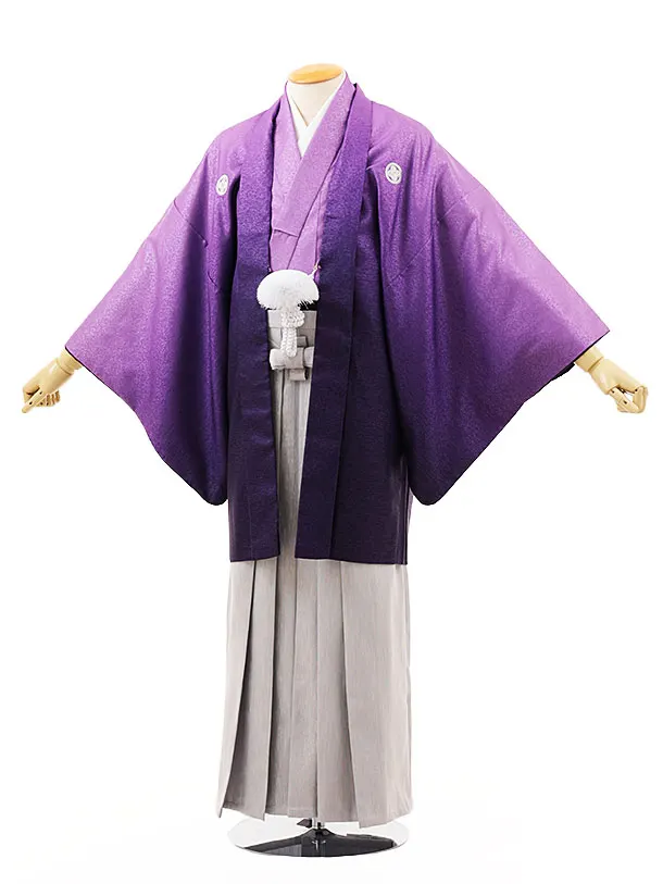 男性袴レンタル0247 パープルラメぼかし紋付×グレーシルバー