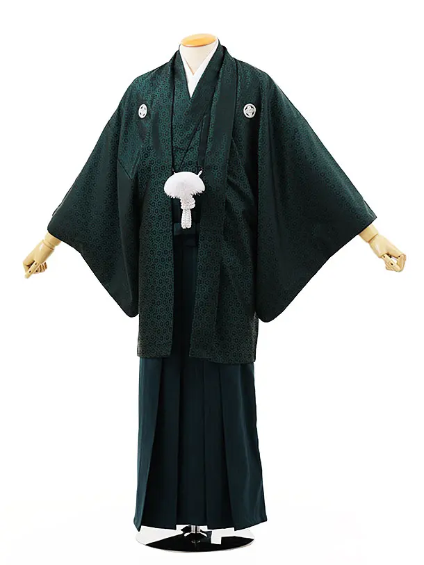 男性袴レンタル0250 モスグリーン紋付×ブルーグリーン