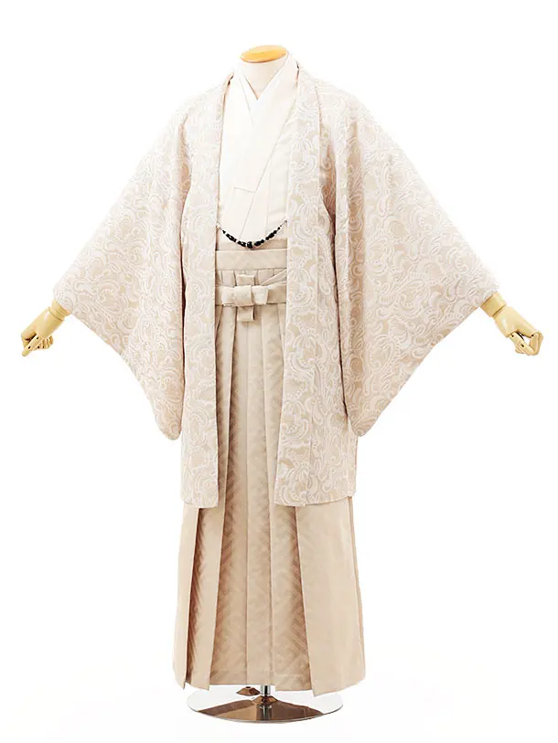 男性袴レンタル0251 ゴールドペイズリー×ベージュ