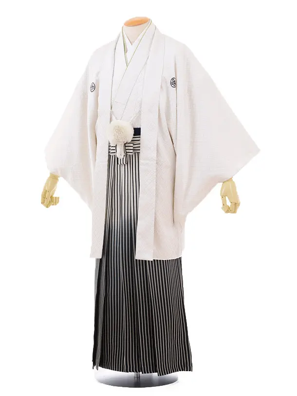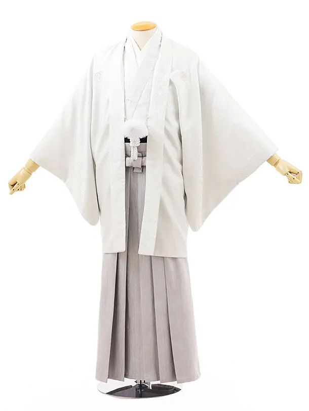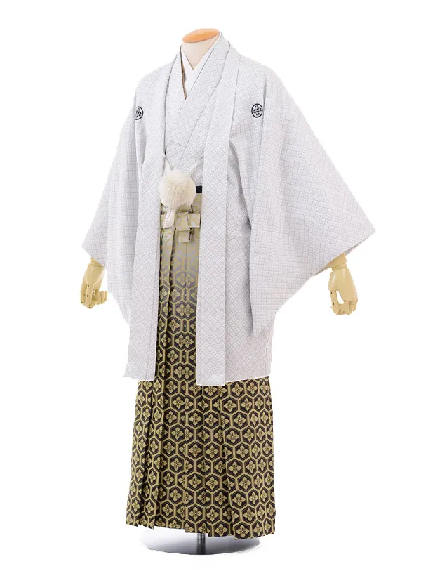 成人式卒業式袴レンタル(男)D033白ゴールド菱紋付