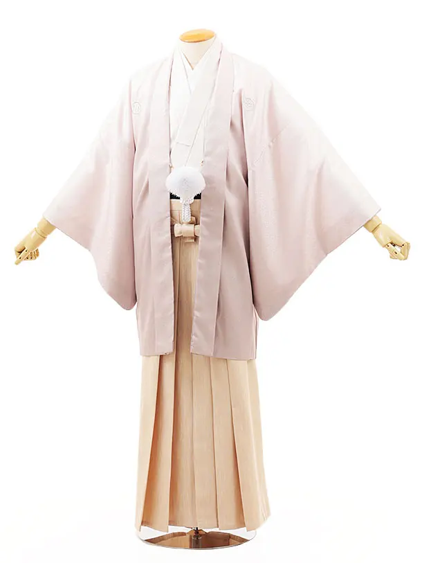 男性袴レンタル0263 ピンクラメぼかし紋付×ベージュラメ
