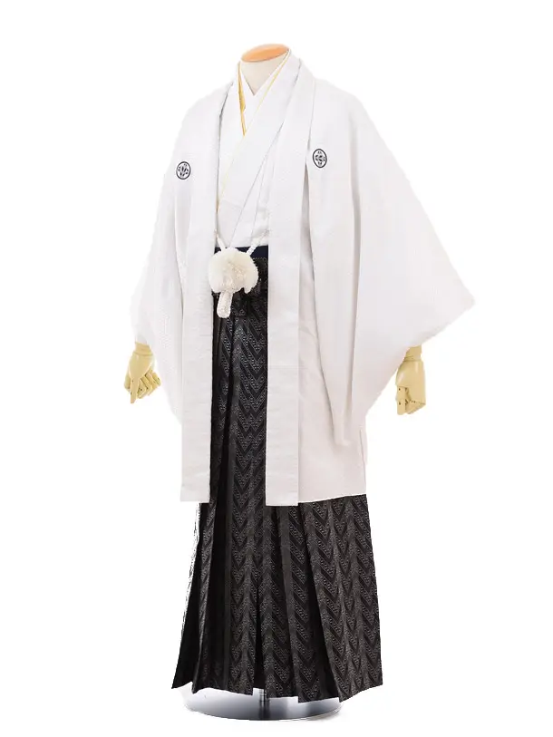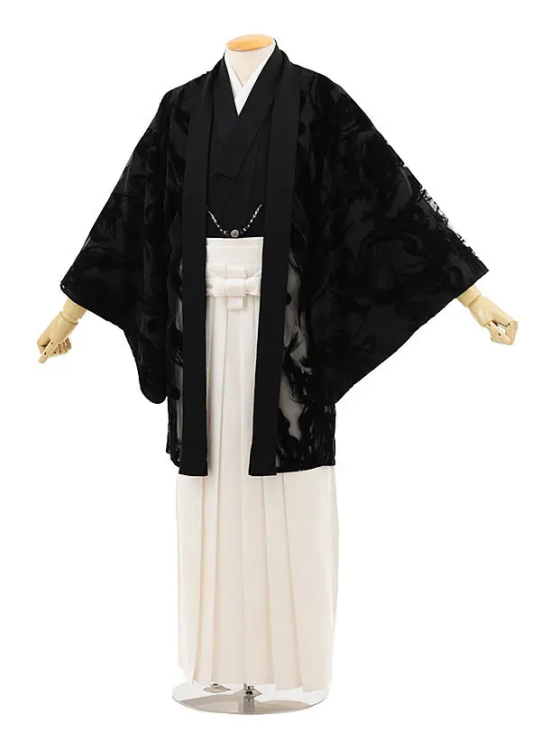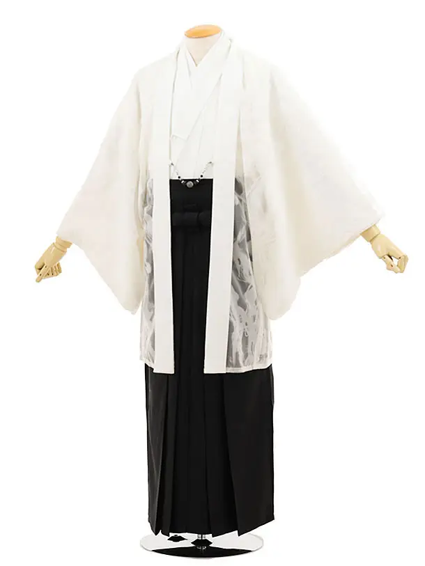 成人式卒業式袴レンタル(男)D019白紋付×黒シルバ