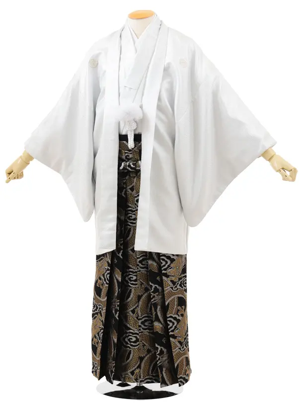 男性袴レンタル0304 ホワイトシルバー亀甲紋服×黒金龍