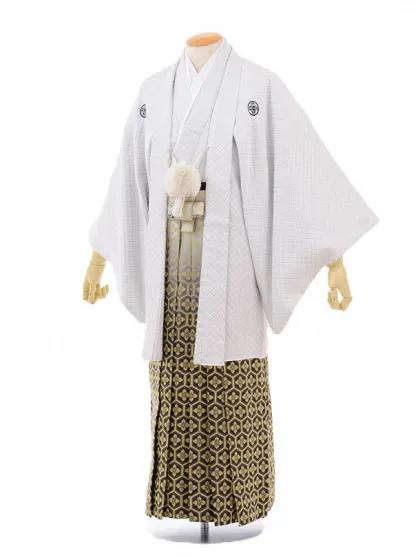 男性袴レンタル0261 薄白グレー紋付×グレーラメ