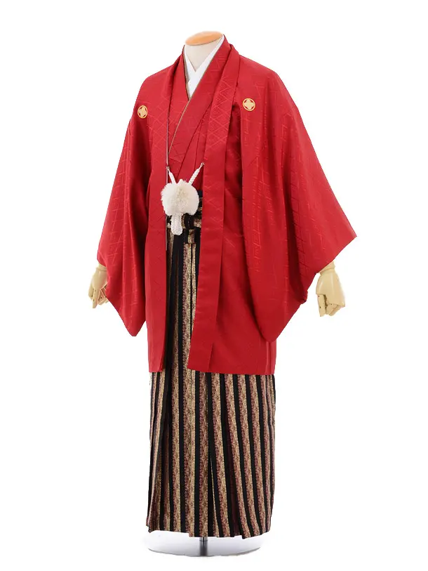 成人式卒業式袴レンタル(男)D032赤紋付×黒ゴール