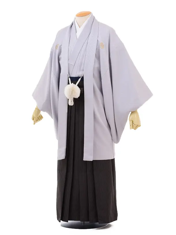 男性袴レンタル0243 シルバーグレー紋付×ベージュストライプ