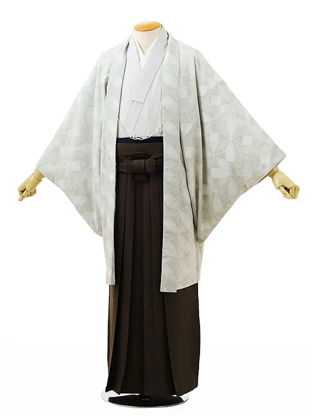 男性袴レンタル0262 薄白グレー紋付×グレーラメ