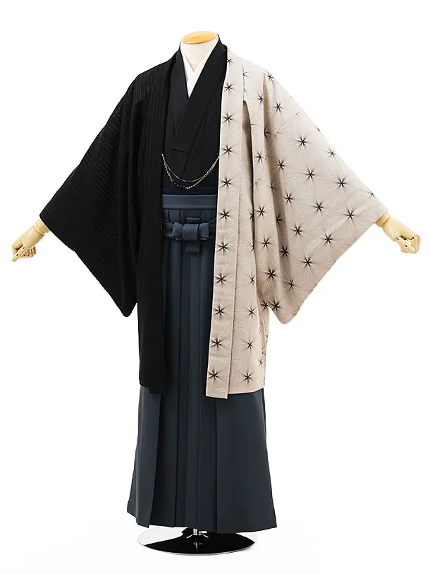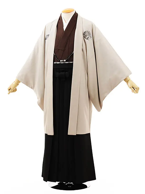 男性袴レンタル0236 JAPANSTYLEベージュ刺繍しゃれ紋×黒袴