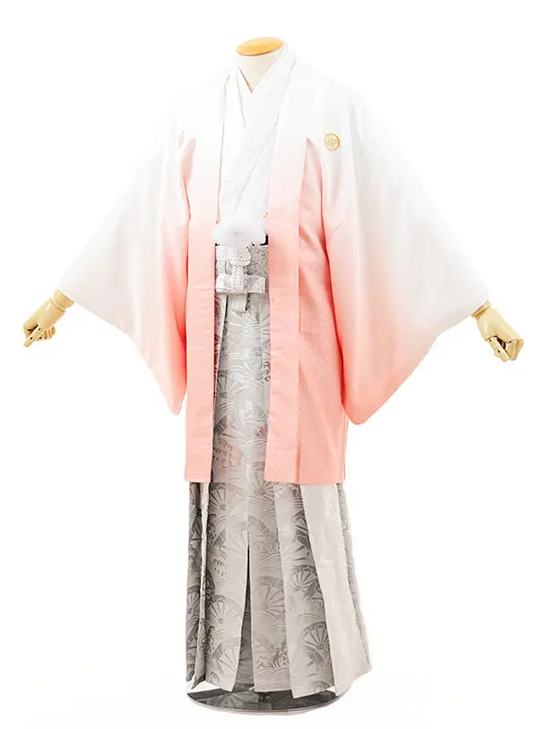 男性袴レンタル0237 白サーモンピンクぼかし紋付×白シルバー