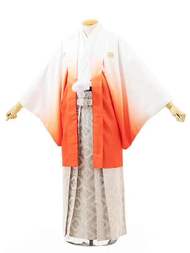 男性袴レンタル0239 白オレンジぼかし紋付×白シルバー