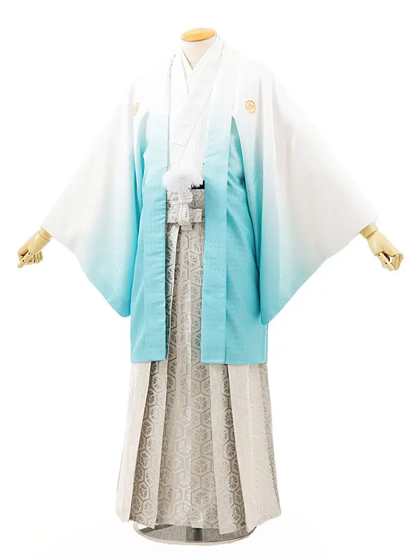男性袴レンタル0240 白水色ぼかし紋付×白シルバー