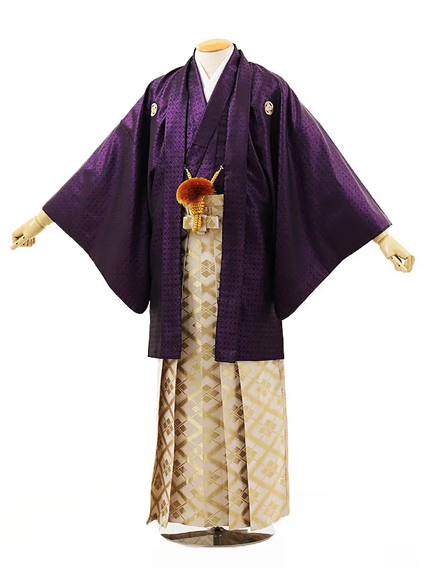 男性袴レンタル0242 パープルラメ紋付×ゴールド