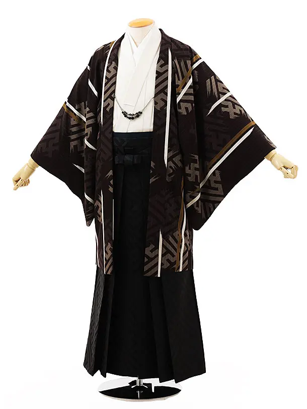 男性袴レンタル0255 JAPAN STYLE こげ茶紗綾形×こげ茶
